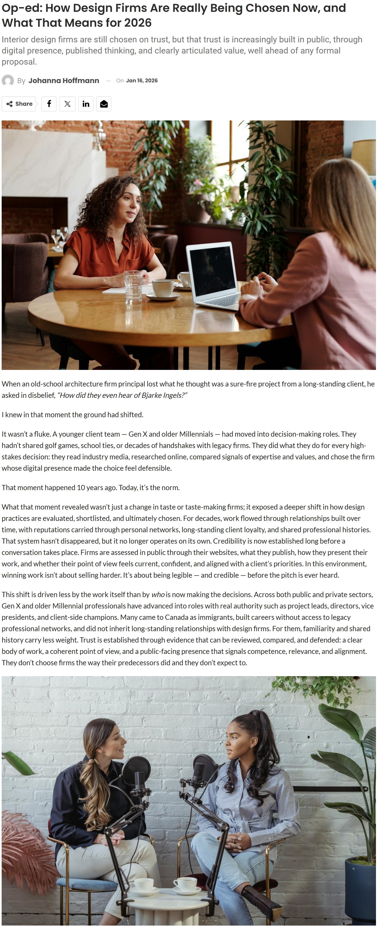We were delighted to be invited by Canadian Interiors to contribute an op-ed on business development and how design firms are really being chosen today.