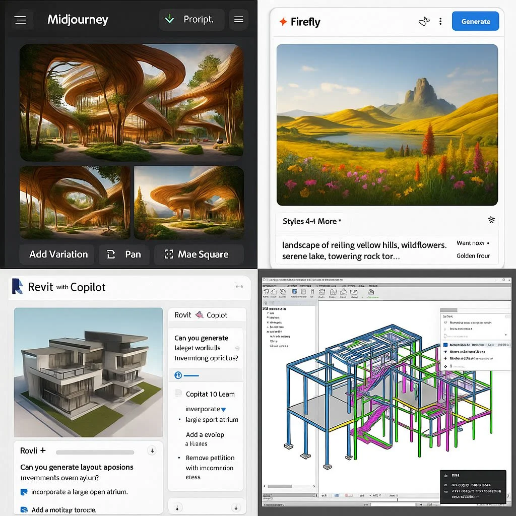 Develop internal AI guidelines and upskilling pathways: Empower staff to safely and strategically use tools like Midjourney, Firefly, TestFit, and Revit Copilot.